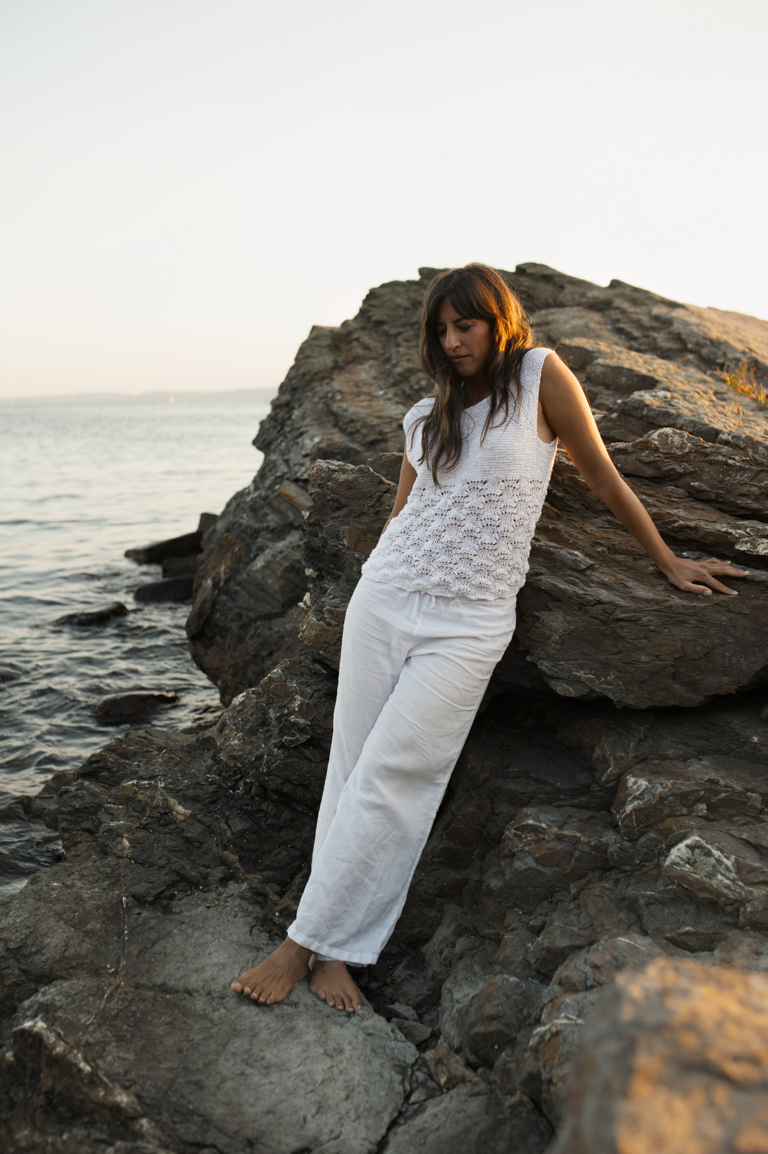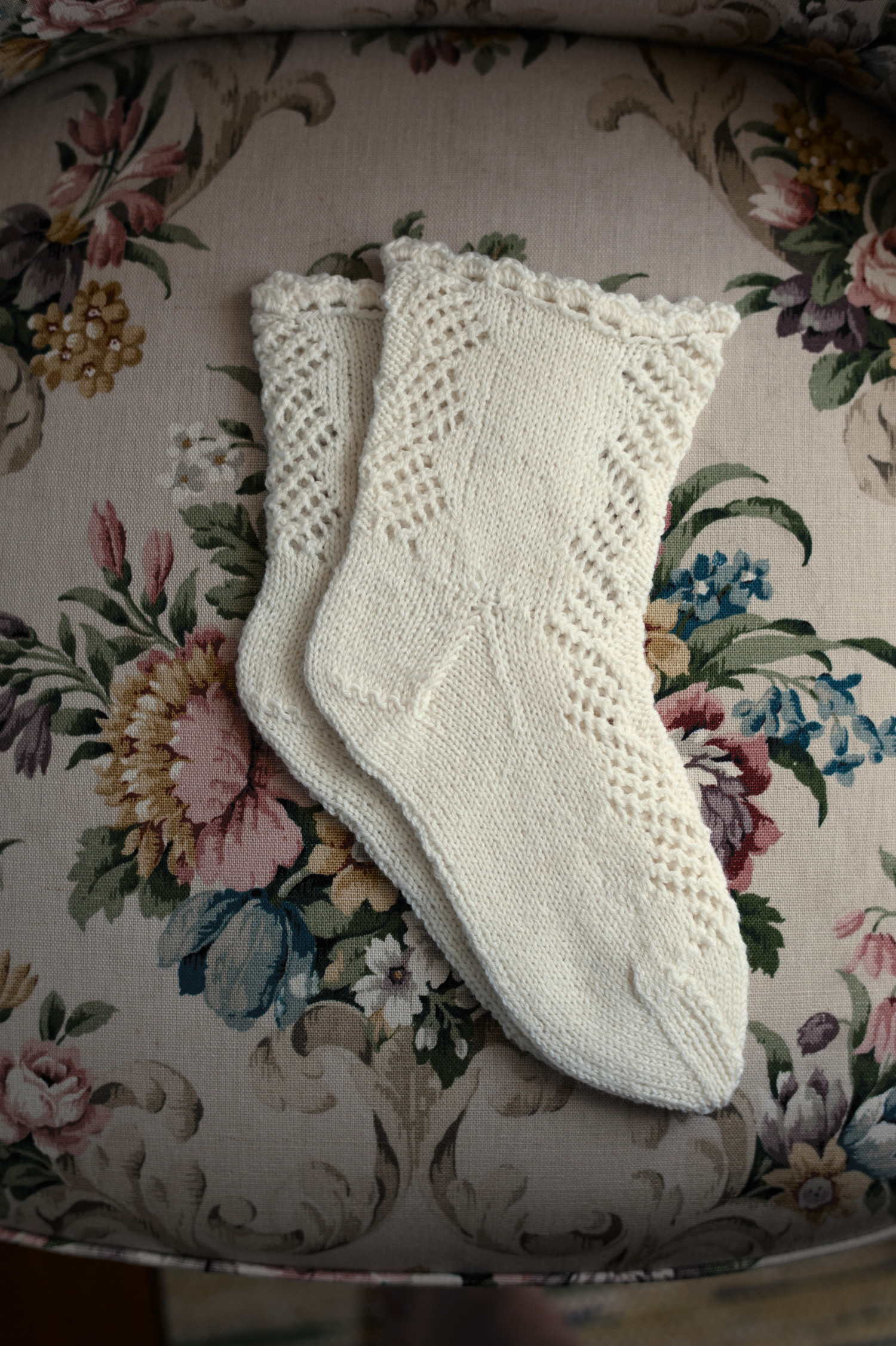 Hullstrikk, eller blondestrikk, har alltid fascinert meg. Da jeg var liten, strikket moren min det ene sjalet etter det andre, dog i svært enkel hullstrikk. Hun lærte meg teknikken da jeg så vidt var i skolepliktig alder, og jeg husker vi avanserte fra sjal til sengejakke, en slags bolero eller sjelevarmer. Den ble strikket i ett stykke fra erme til erme. Mønsteret besto av fire pinner rillestrikk og en hullrad med hvitt garn, og så byttet vi til nytt garn, helst i pastellfarger. ... Moren min inntok frokosten på sengen med Aftenposten hver eneste morgen, og hun hadde alltid sengejakken på. ...
