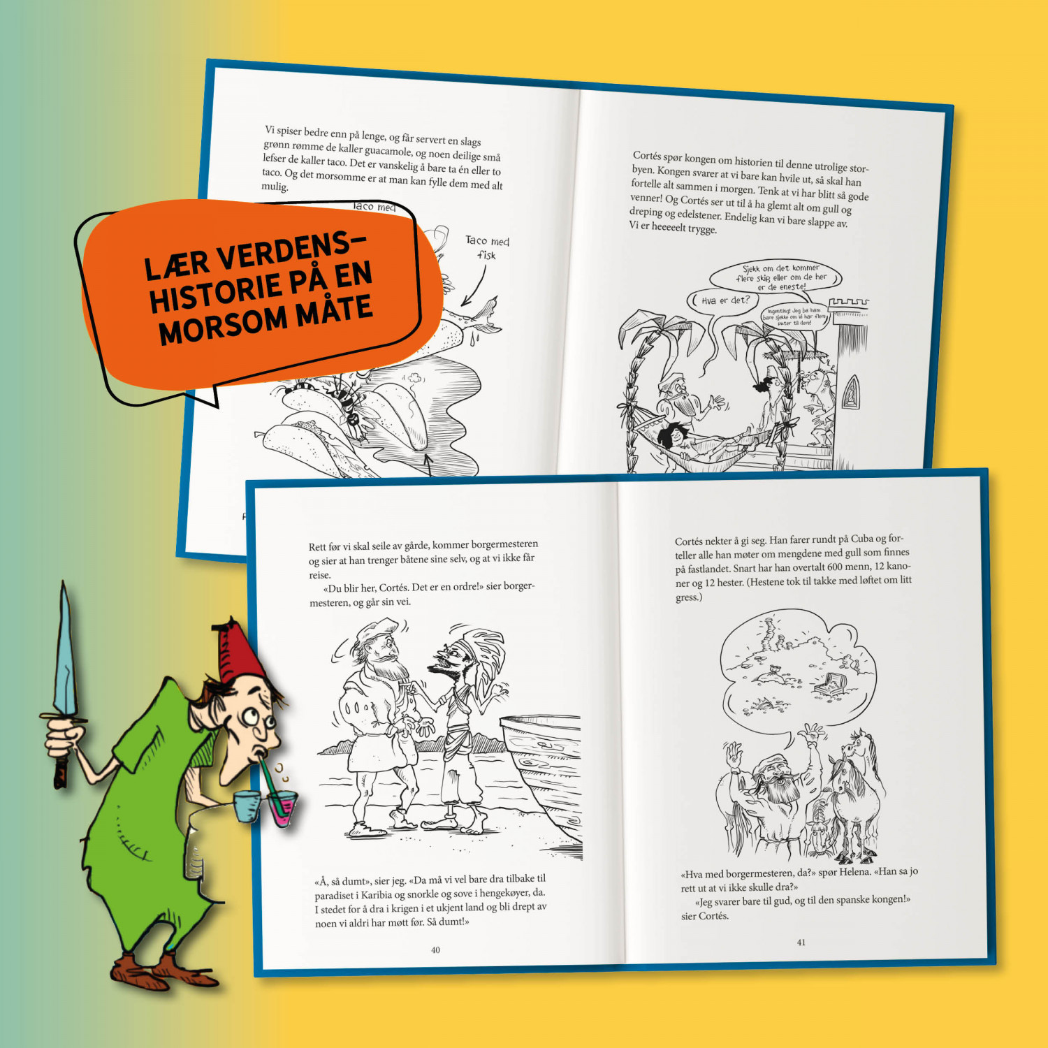 Lær verdenshistorie på en helt annen måte enn du gjør på skolen ved hjelp av ellevill tekst og fantastsike illustrasjoner. Du kommer til bå de å le og lære en masse.