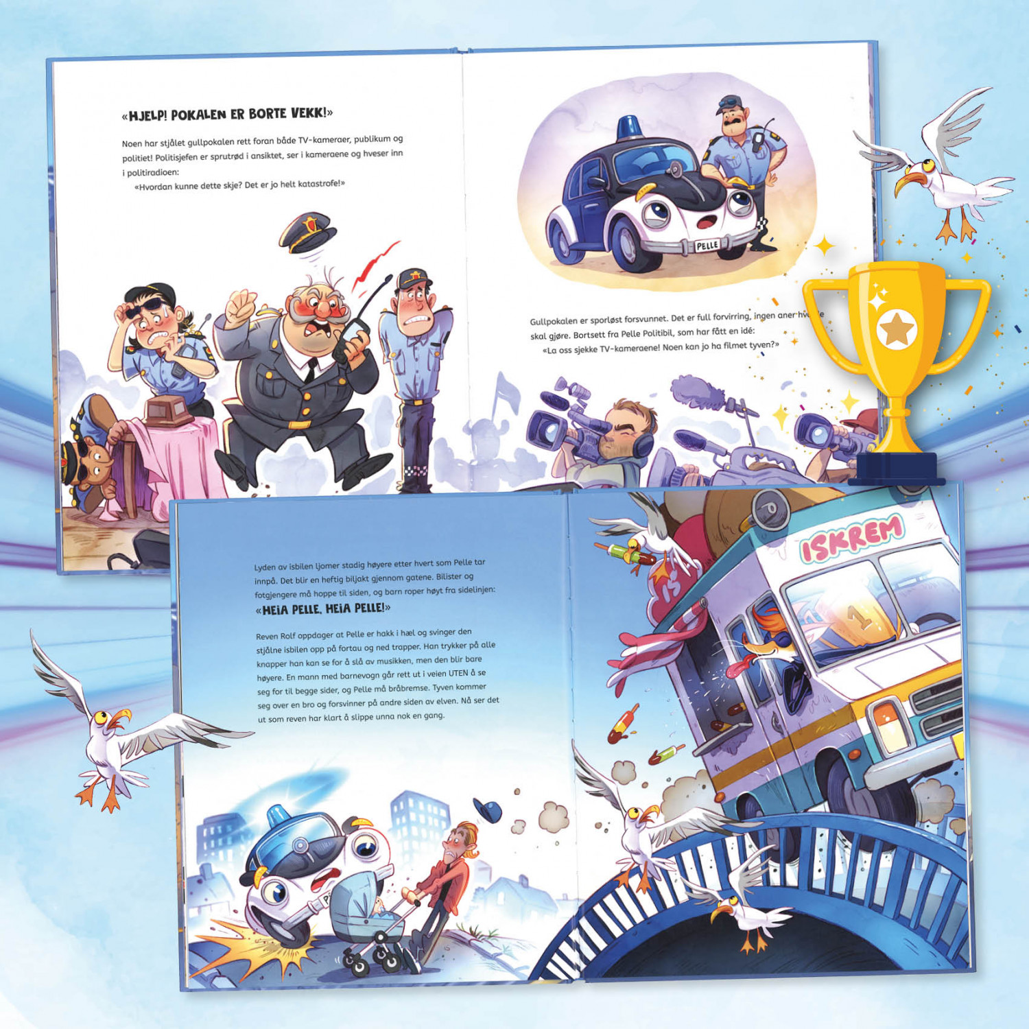 Det er fest i byen. Det lokale fotballaget skal feires med parade, musikk og den store gullpokalen. Men midt i jubelen skjer det utenkelige – pokalen forsvinner sporløst! Politisjefen er fortvilet, publikum er i sjokk. Det er bare én liten politibil som klarer å holde hodet kaldt: Pelle Politibil! Sammen med Onkel Rikhard må Pelle ta opp jakten på den lure reven Rolf – gjennom folkemengden, langs gatene i en halsbrekkende biljakt. Klarer Pelle å redde gullpokalen og festen for hele byen?