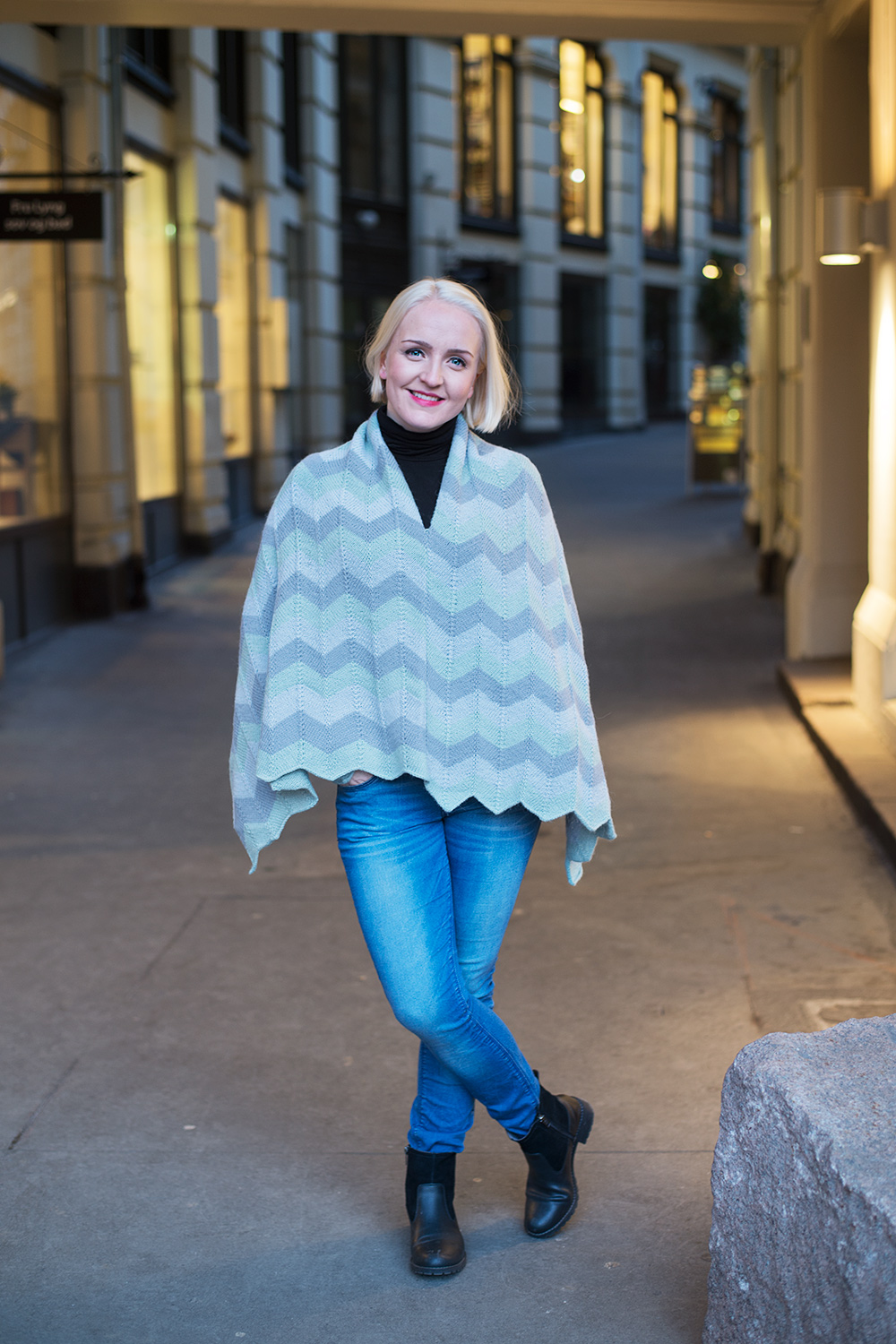 Poncho - dette enkle, og så elegante plagget. Jeg har alltid følt at jeg blir noen centimeter høyere når jeg har på meg en poncho. Det er noe sofistikert over den. Når har den kommet tilbake for fullt over hele verden. Det er bare å ta en titt på trikken, i butikkvinduene og på bilder fra moteverdenens catwalker - ponchoen har blitt en skikkelig dille. Den kan være tykk eller tynn, med eller uten frynser, nøytral eller mønstret, ytterplagg eller festplagg. Det er nesten uendelige muligheter til å utforme en poncho, men fellesnevneren er den enkle formen og brukervennligheten.