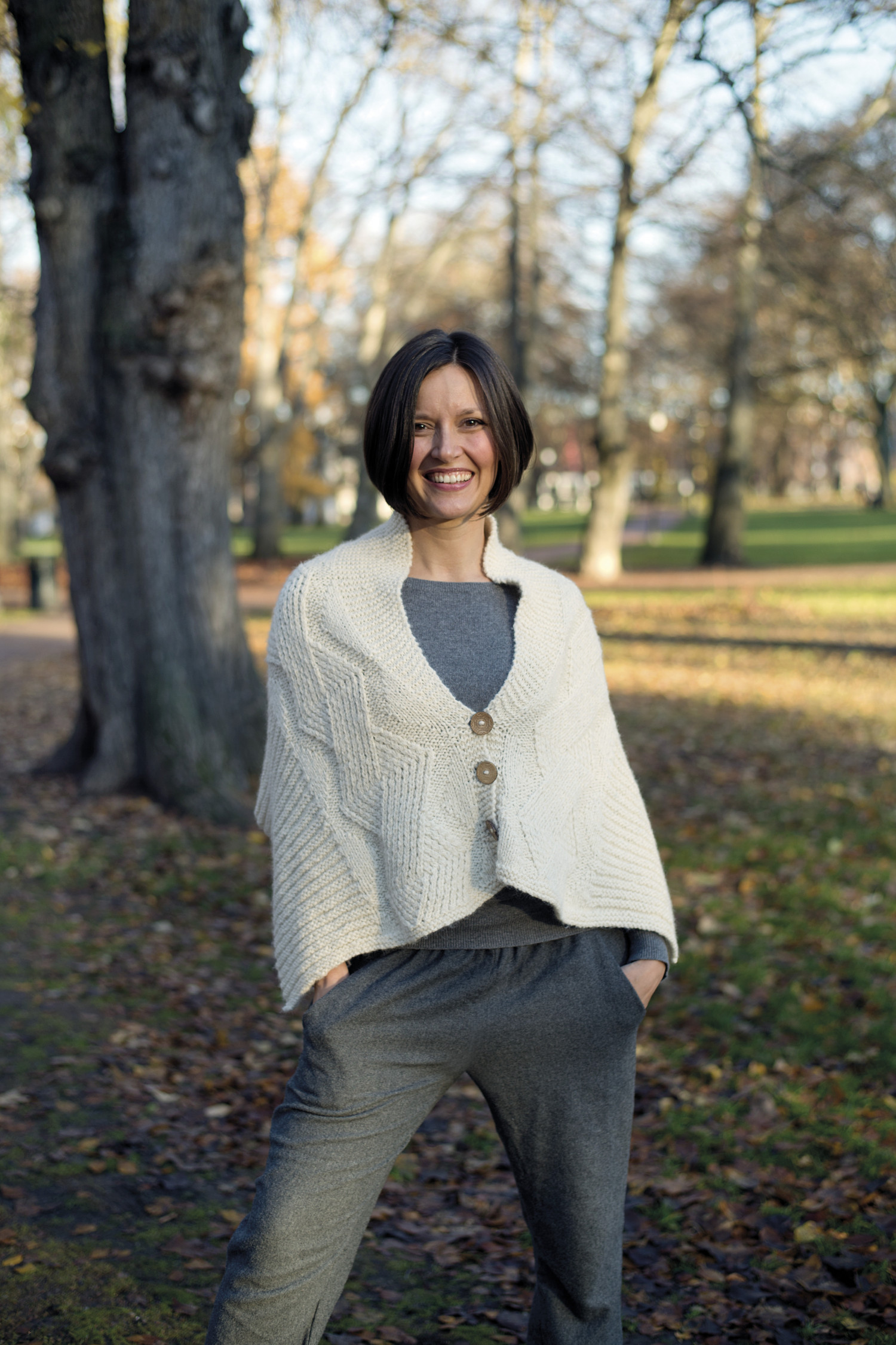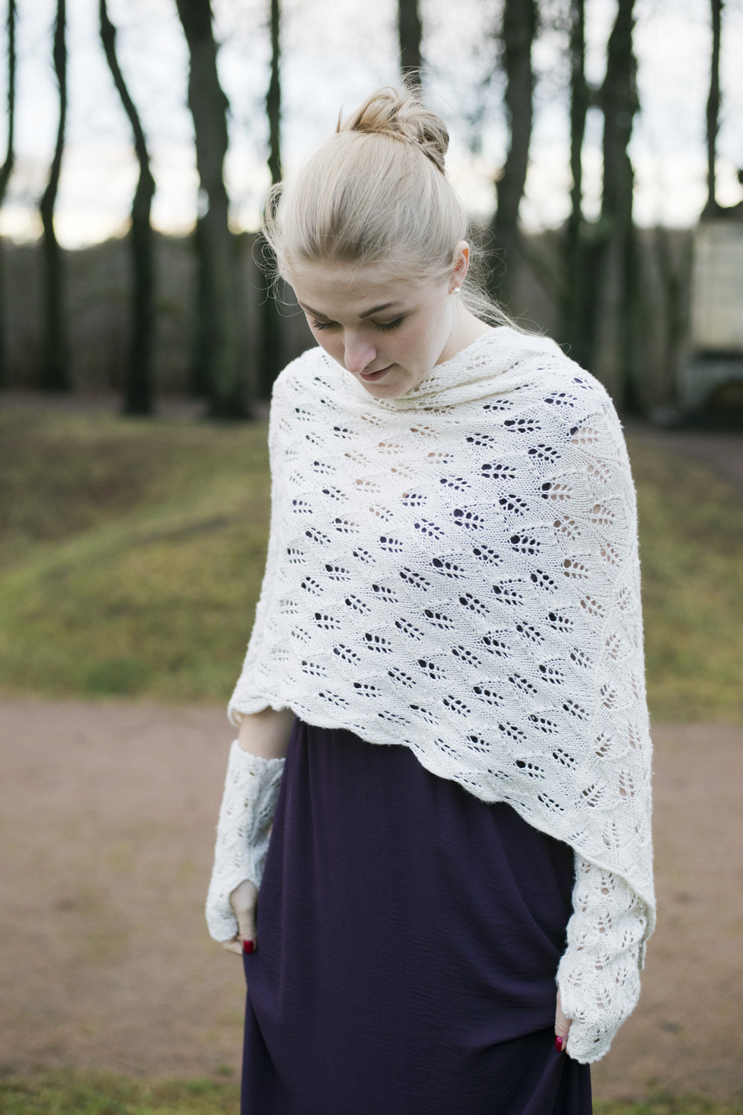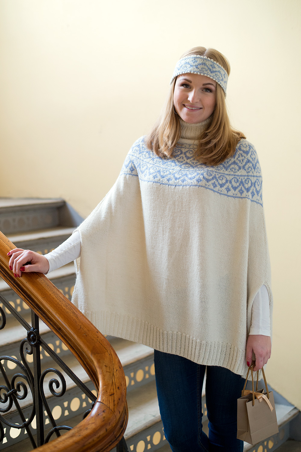 Til flere av ponchoene er det tilbehør som matchende lue, pannebånd, pulsvarmere eller støvelmansjetter. Jeg anbefaler deg å strikke ponchoene på rundpinne selv om arbeidet skal strikkes frem og tilbake. Det er mindre belastende for skuldre, nakke og armer.