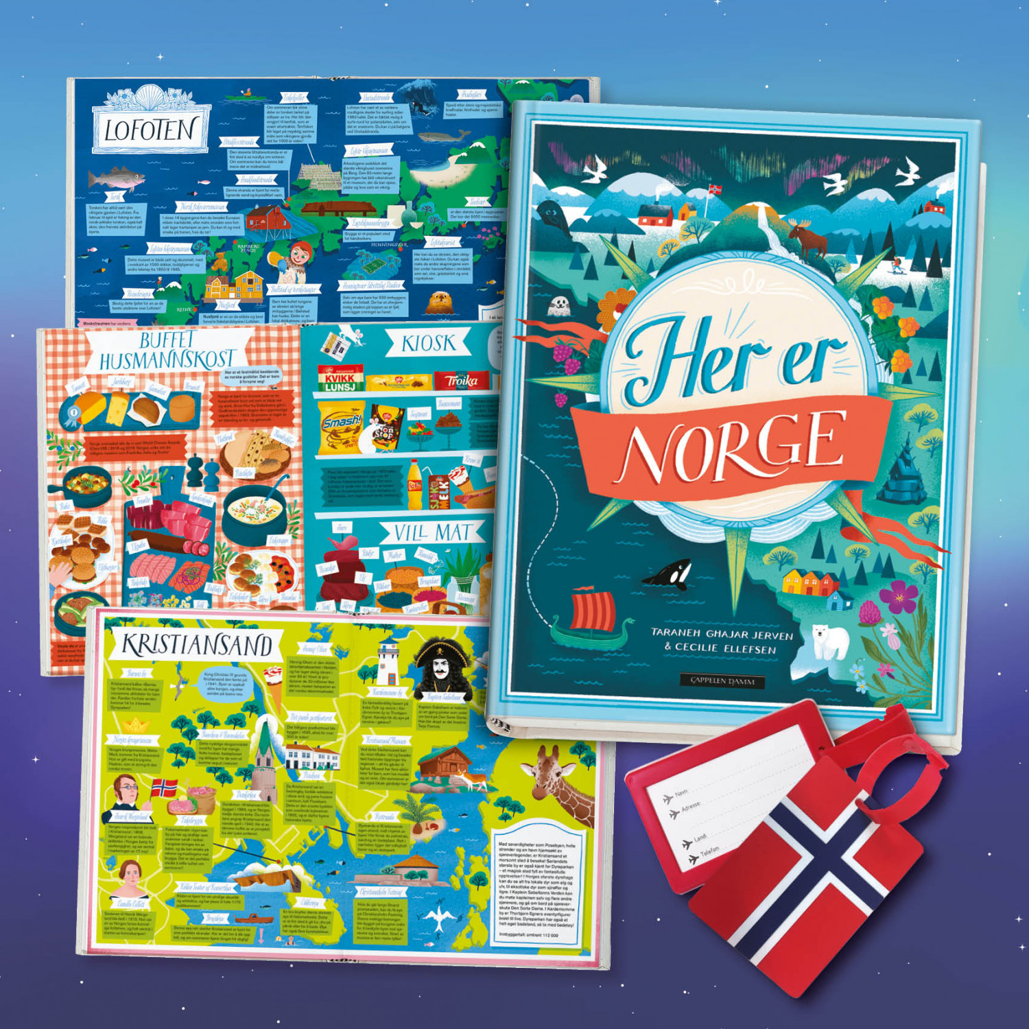Norge er et lite land, fullt av morsomme steder å utforske, fascinerende historie og en unik kulturarv. I denne boka kan du dykke ned i fengende fakta om alt fra norsk mat og språk til lokalkultur og storbyer. Boka tar for seg region for region i det langstrakte landet vårt, og skildrer ulike temaer med spennende oppdagelser på hver side. Bagasjelappen er i solid gummi, har adressefelt på baksiden og justerbart bånd. Og - det fineste flagget i verden, da!